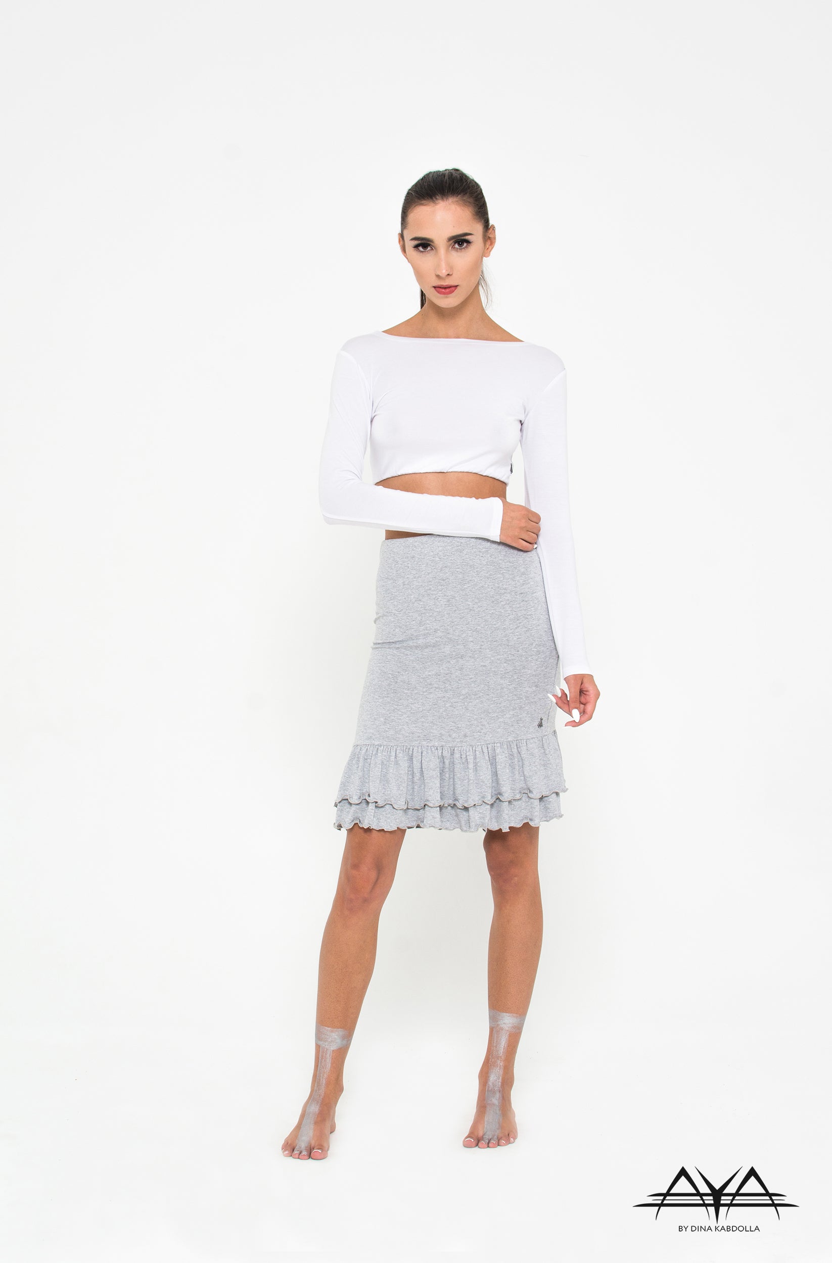 Most favorite flared skirt featuring metallic thread finish on the hem with our AyA mini stopper on the side. Beautifully paired with our AyA essential crop top. Feel the ease style, comfort & quality with us.