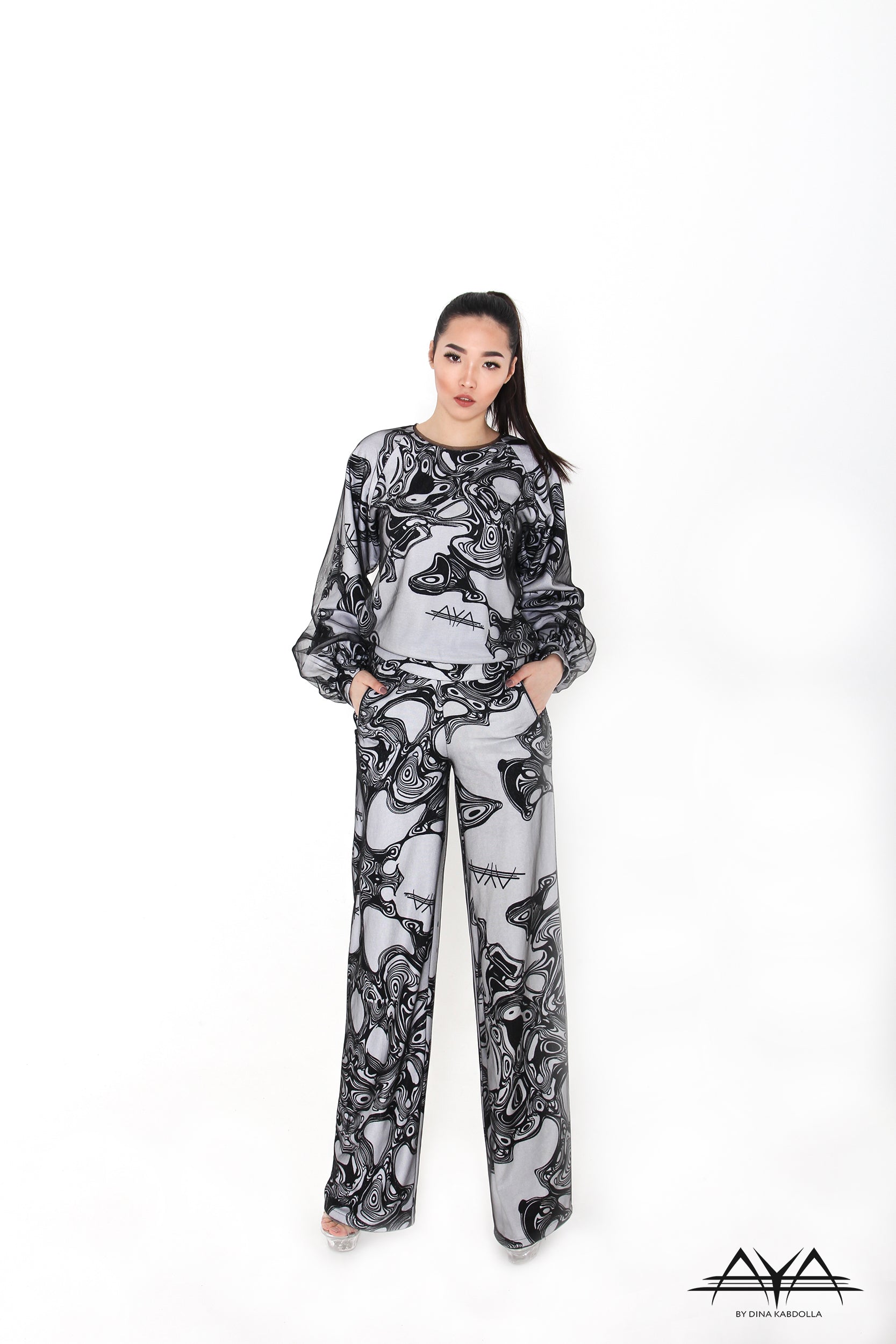 Exclusively knitted AyA jersey, comfort, chic & style at once. Exemplify unique quality and comfort with simple artistic silhouettes. AyA creates its own signature prints. Each piece is cut to be non-repeatable and exclusive to the wearer