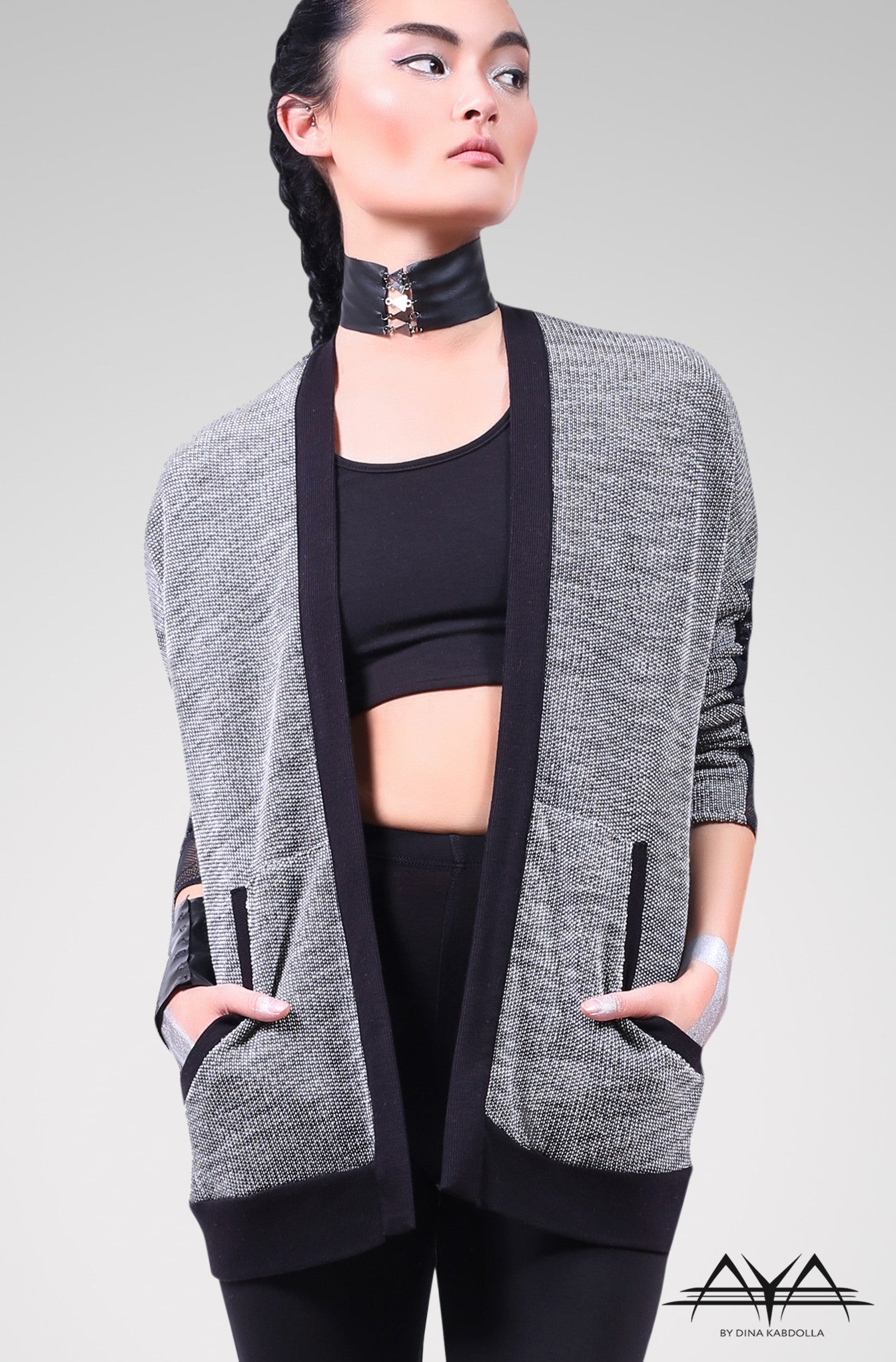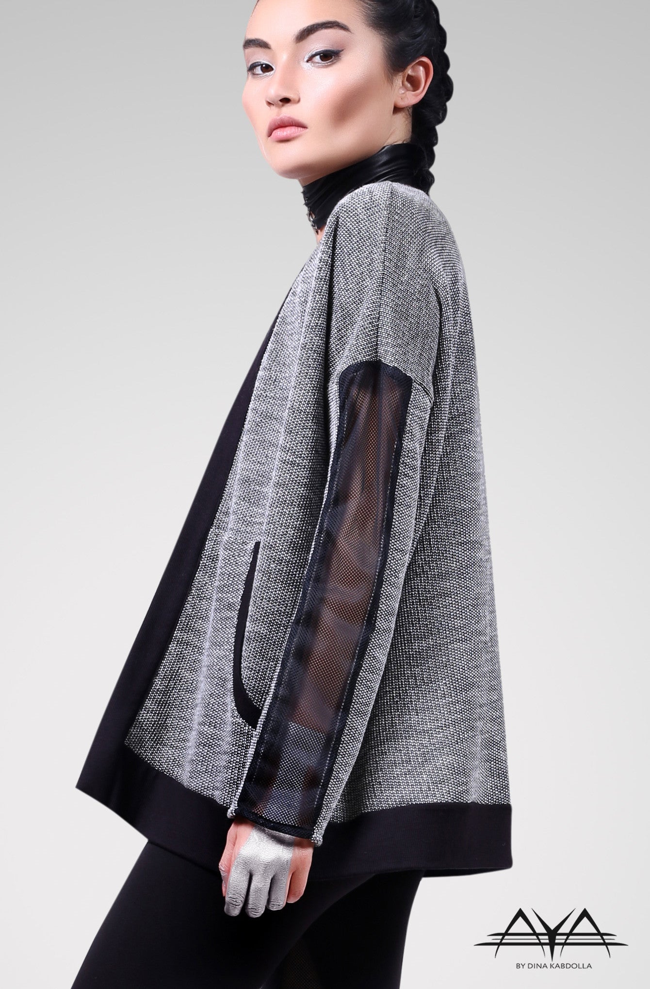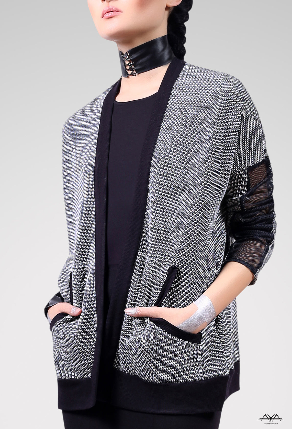 Layer your outfit with this sleek, form fitting, cropped sleeve cardigan with a mesh elbow lining, designed in both Pattern and Solid Print.