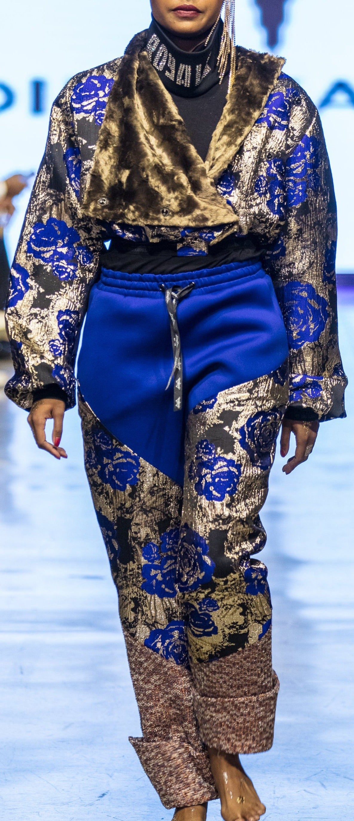 Exclusive Set 1 comes with the most original silhouettes, combines AyA's signature comfort and artistic aesthetic of the brand. Comes with double sided jacket with unique under layer sweat-pant silhouette. The set combines tough fit sport with elegant underline forms through choice of fabrics. This set made out of exclusive fabrics such as; silk metallic jacquard & tweed. AyA' by Dina Kabdolla's signature is to give variety of styles in one look but always keep the active comfort. AyA's runway collection is combination of a bridge between comfort and Ethnic chic.