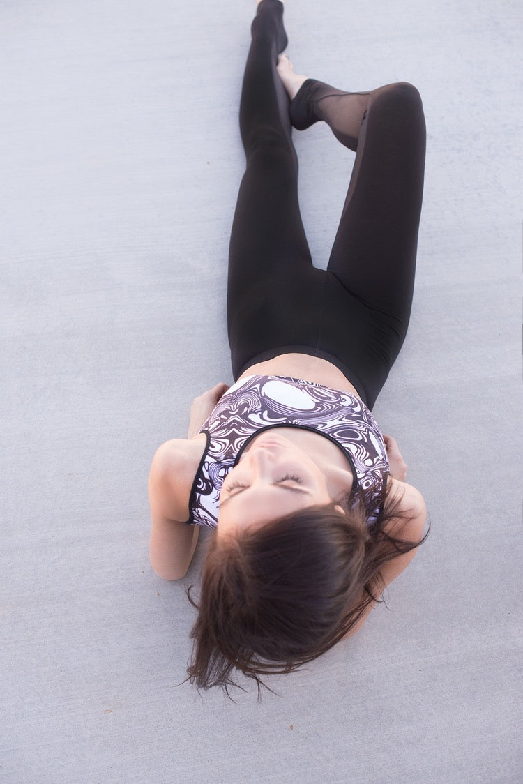 This versatile Micro Modal pant with peek a-boo mesh with inner lining, makes for a shapely and durable legging. Styled with must have piece from our capsule collection Katherine Crop Top Noir. Available in Pattern and Solid Print.