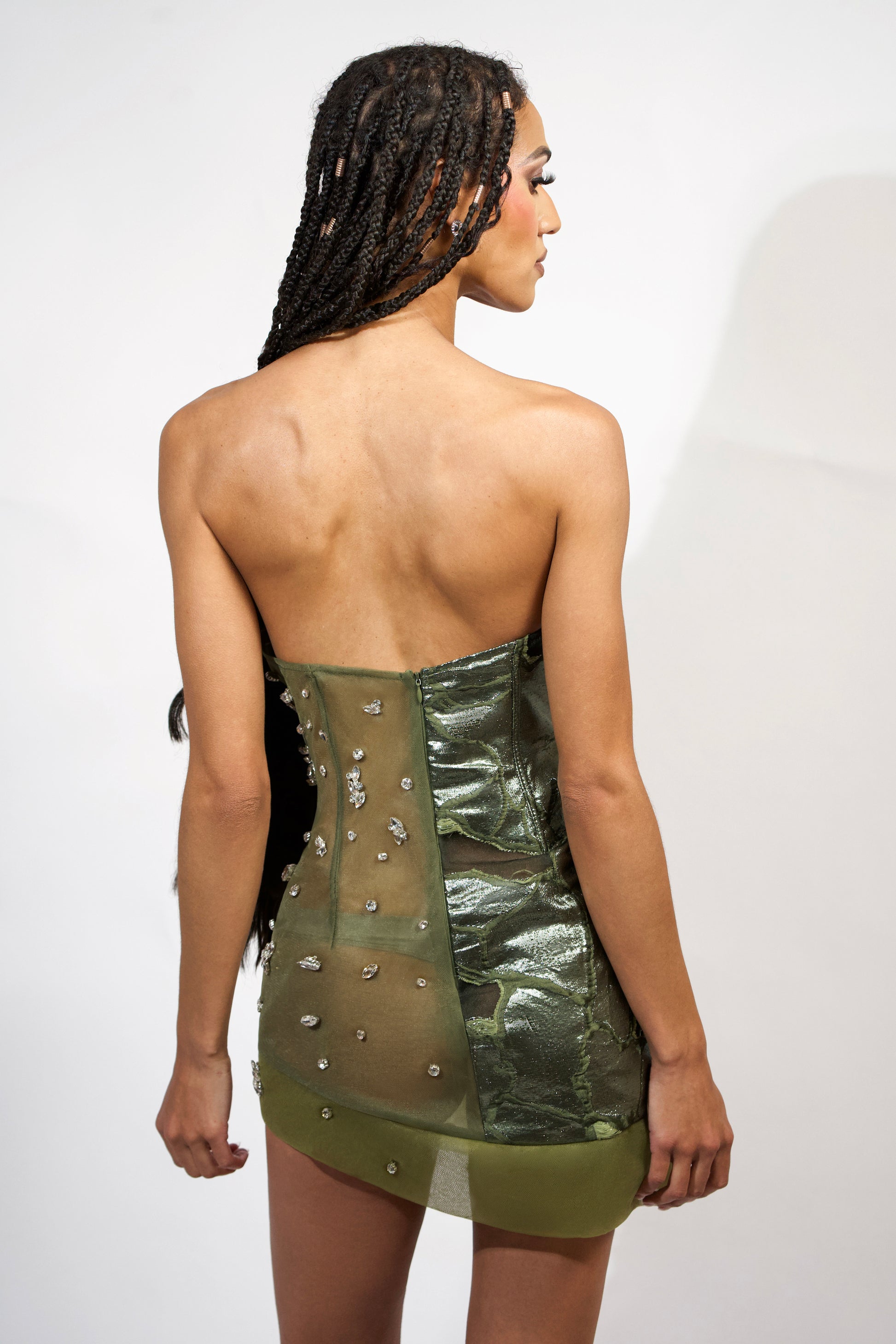 Step into history and elegance with the exclusive Moriah Dress custom-made for Moriah Brown’s premiere and debut in Tyler Perry's Netflix original movie “Six Triple Eight”. Inspired by the film's powerful meaning and historical highlights, the designer sought to showcase how women can embody everything—from a queen’s grace to a soldier’s strength. The dress features a unique design, with one half embracing simplicity and the other symbolizing royalty. Its transformable structure includes as a separate detachable, gown-like skirt, offering versatility for any occasion.