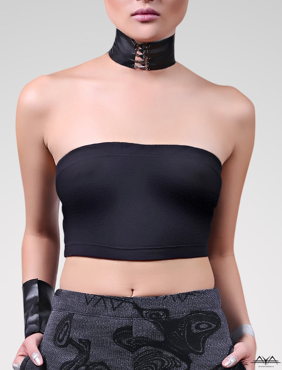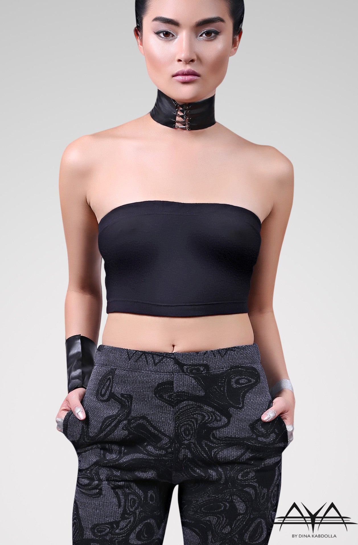 Basic black Modal Tube soundly crops to combine both high wasted and mid rise bottoms. Available in Pattern and Solid Print.
