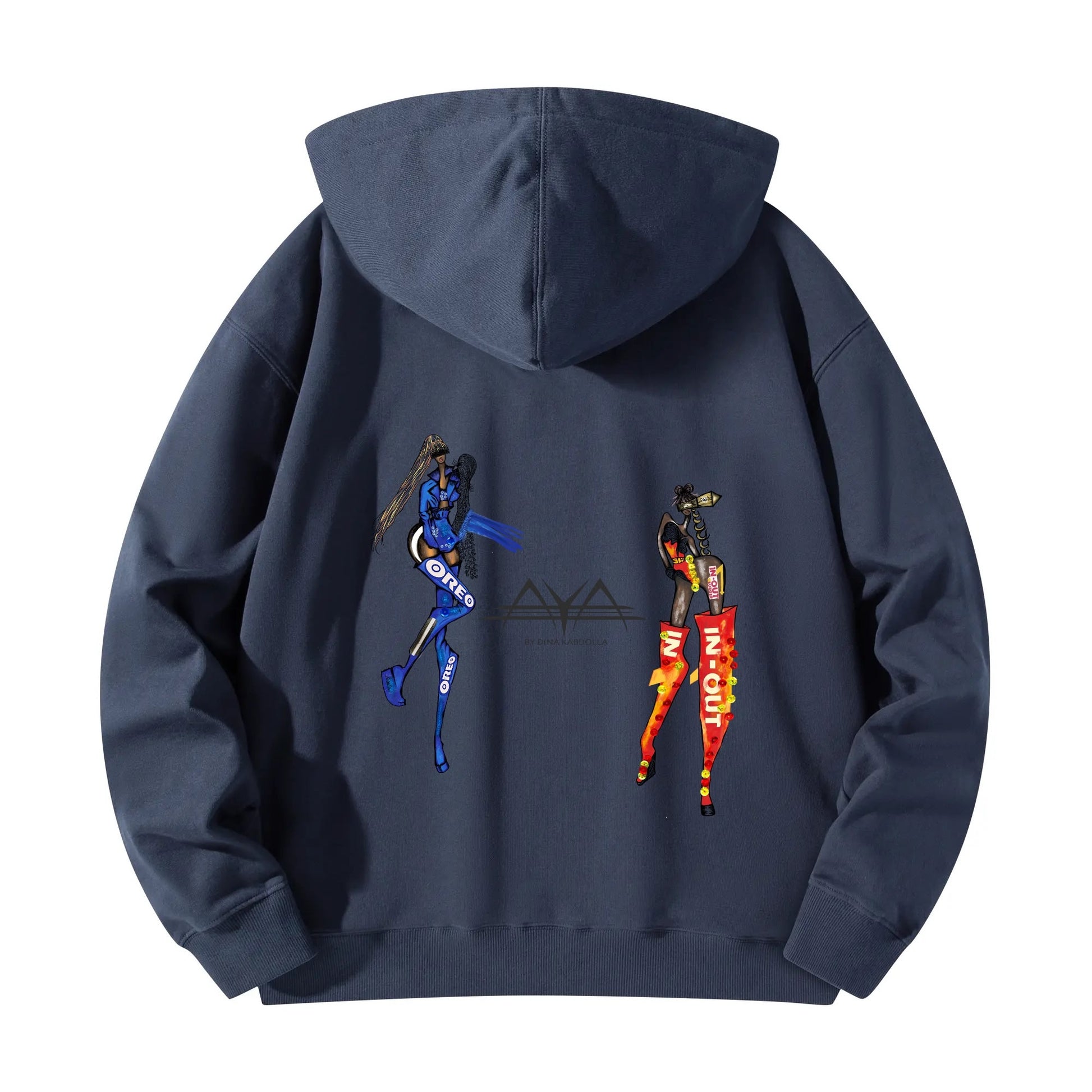 Upgrade your casual wardrobe with the Queen Collection Unisex Cotton Hoodie, designed for ultimate comfort and timeless style for everyone. Perfect for fashion lovers, this hoodie makes a great gift for birthdays, holidays, or just because. Showcases unique, customized designs featuring Queen Macdolena on the front and the stunning prints of Queen Oria and Queen Inna on the back, making it a true statement piece.Whether you’re relaxing at home or stepping out in style, this unisex hoodie is a must-have addition to your collection. Embrace comfort and artistry with every wear! A percentage of every sale supports Hope Road, helping children and mothers from broken families.