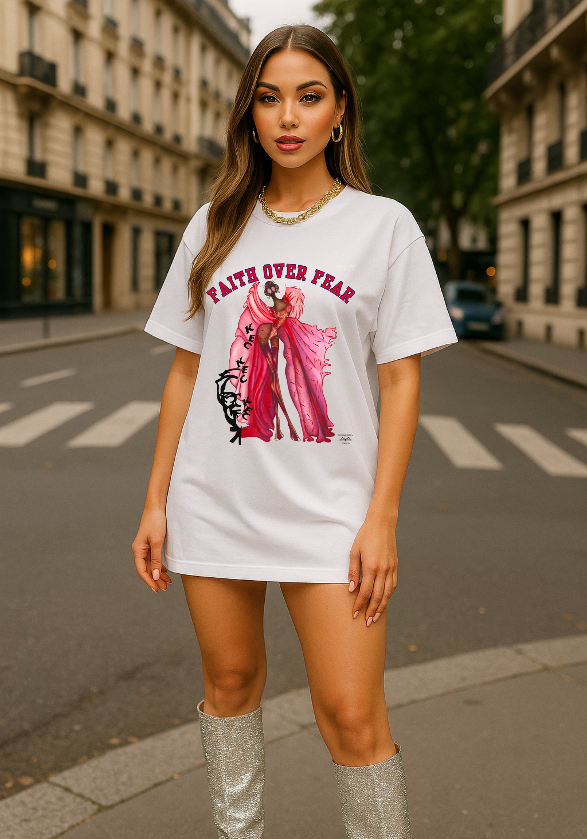 KaFiCa Queen “Faith Over Fear™” T-Shirt | KFC-Inspired Christian Tee | Faith Streetwear | Eco-Art Fashion | AYA by DK