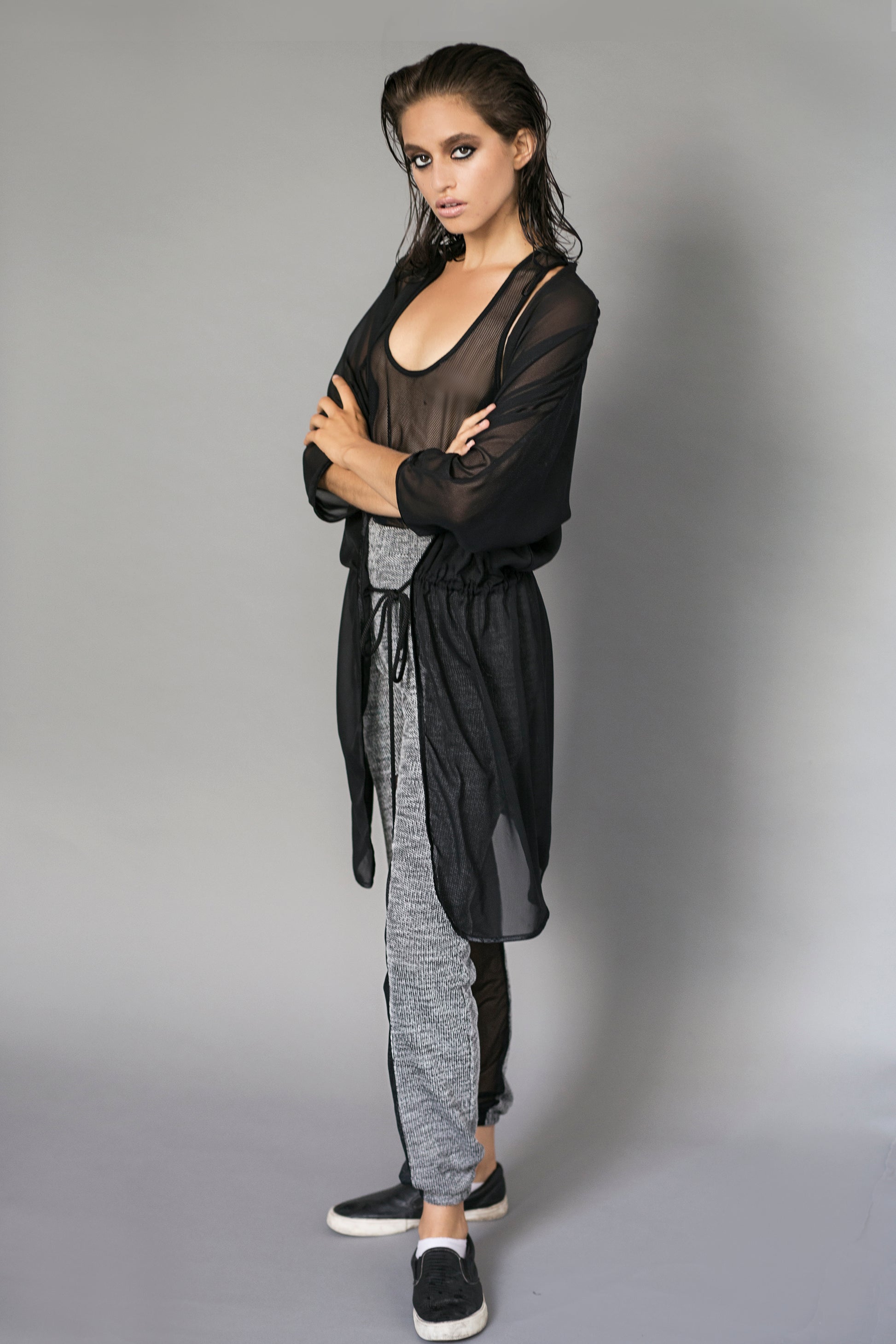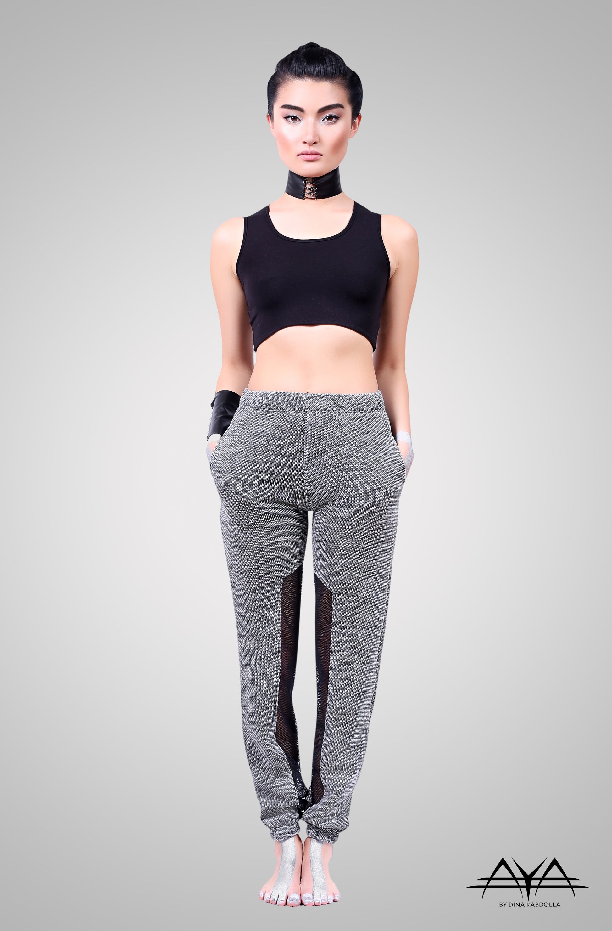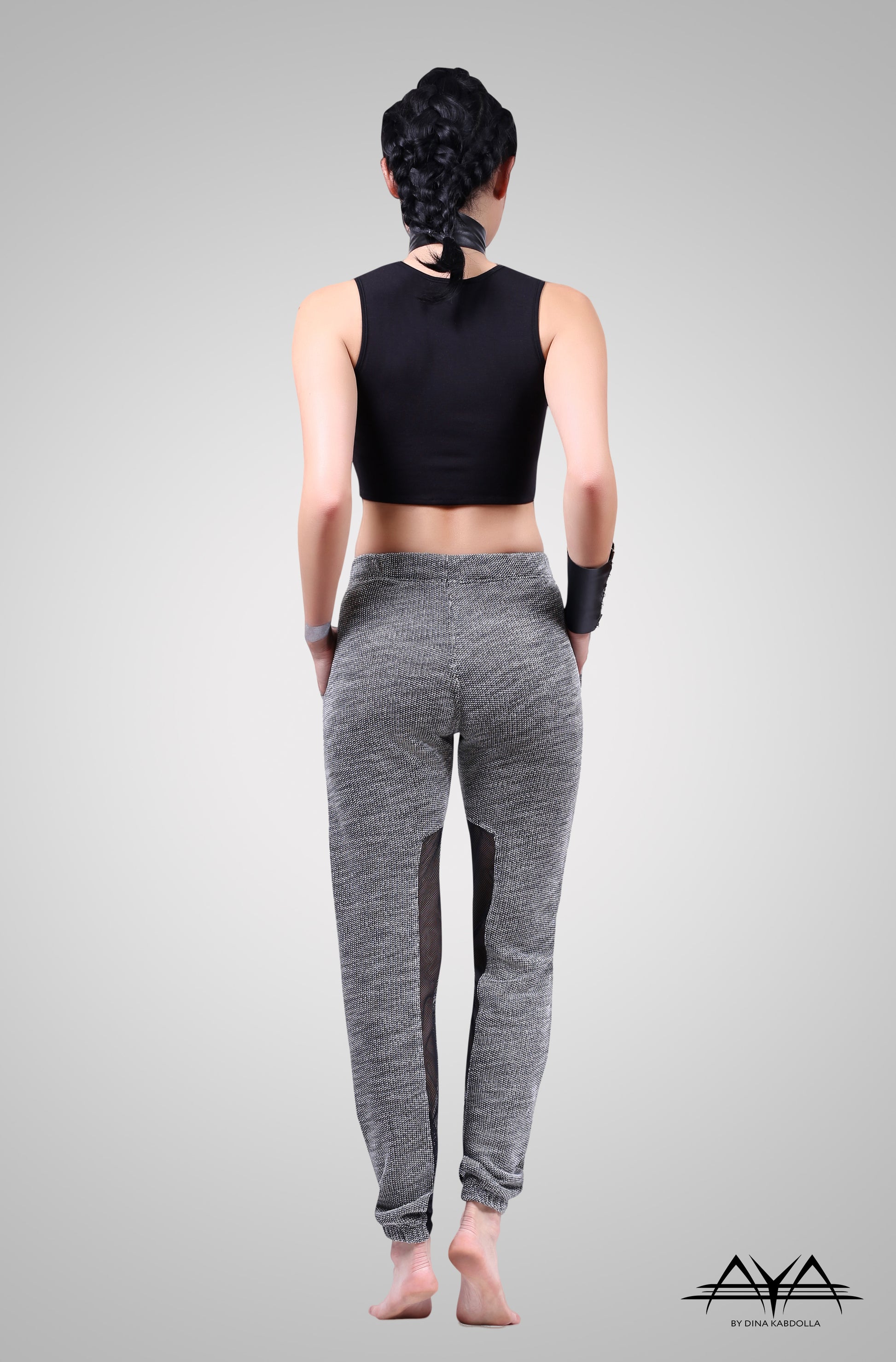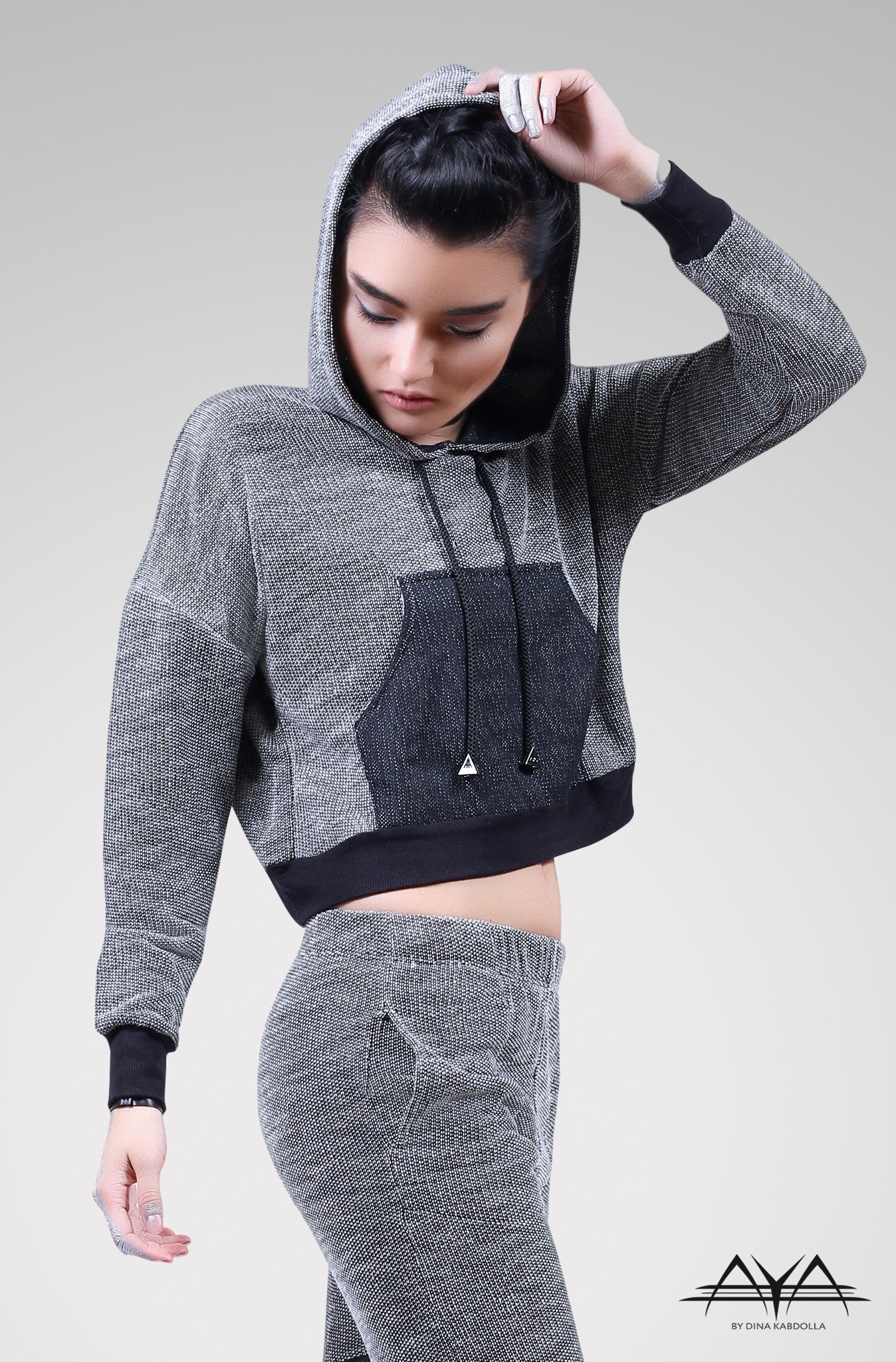 Marie Madeleine is a cropped pullover hoodie, designed in both Print and Solid Print. Both light weight with a mesh contrast on a kenguru pocket, Marie is a staple item in AYAs’ collection. Comes with fitted sweat pant with peek a boo mesh inner lining. Made from French Terry Fabric these bottoms accentuate the physique. Available in Pattern and Solid Print.
