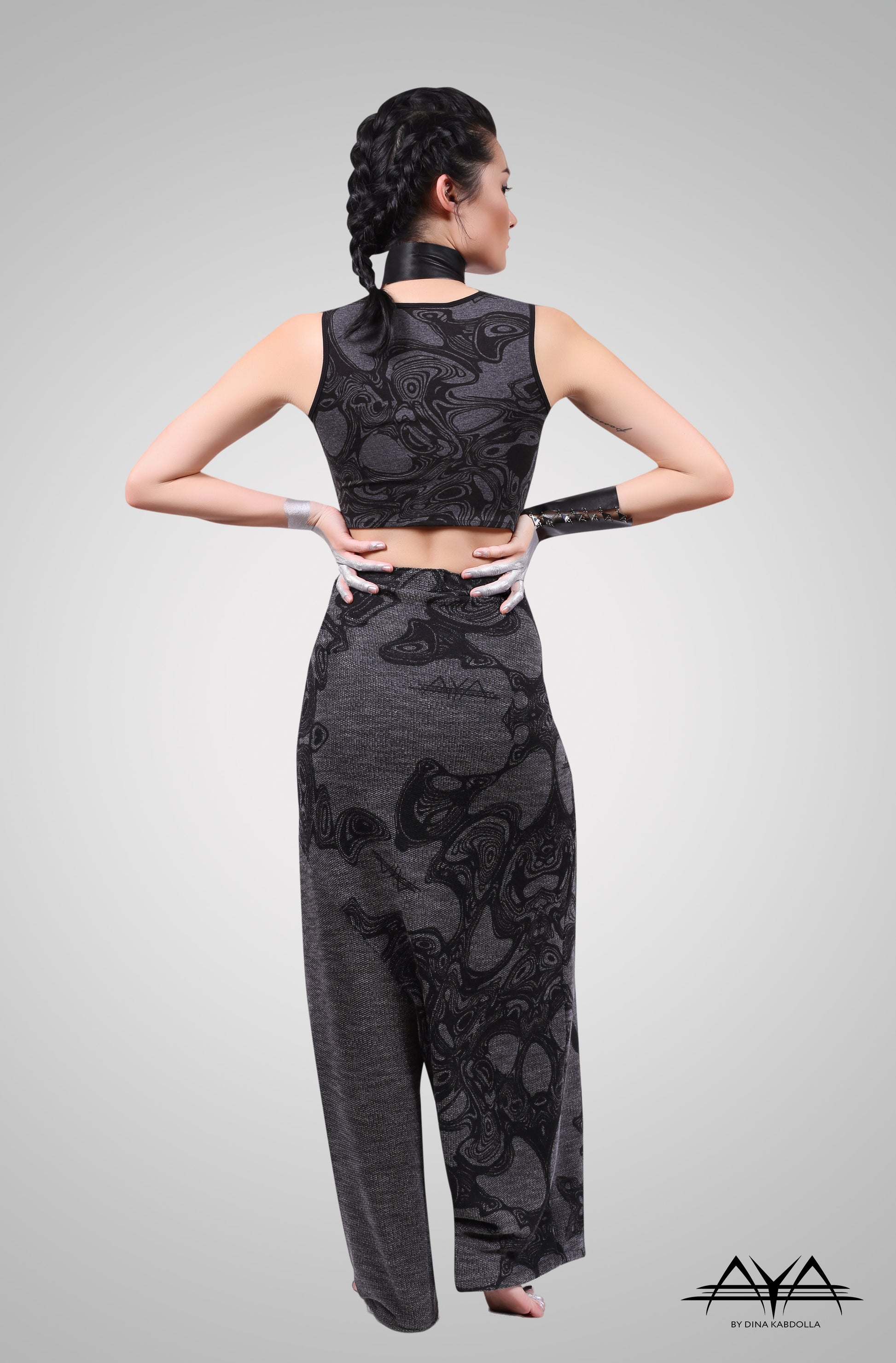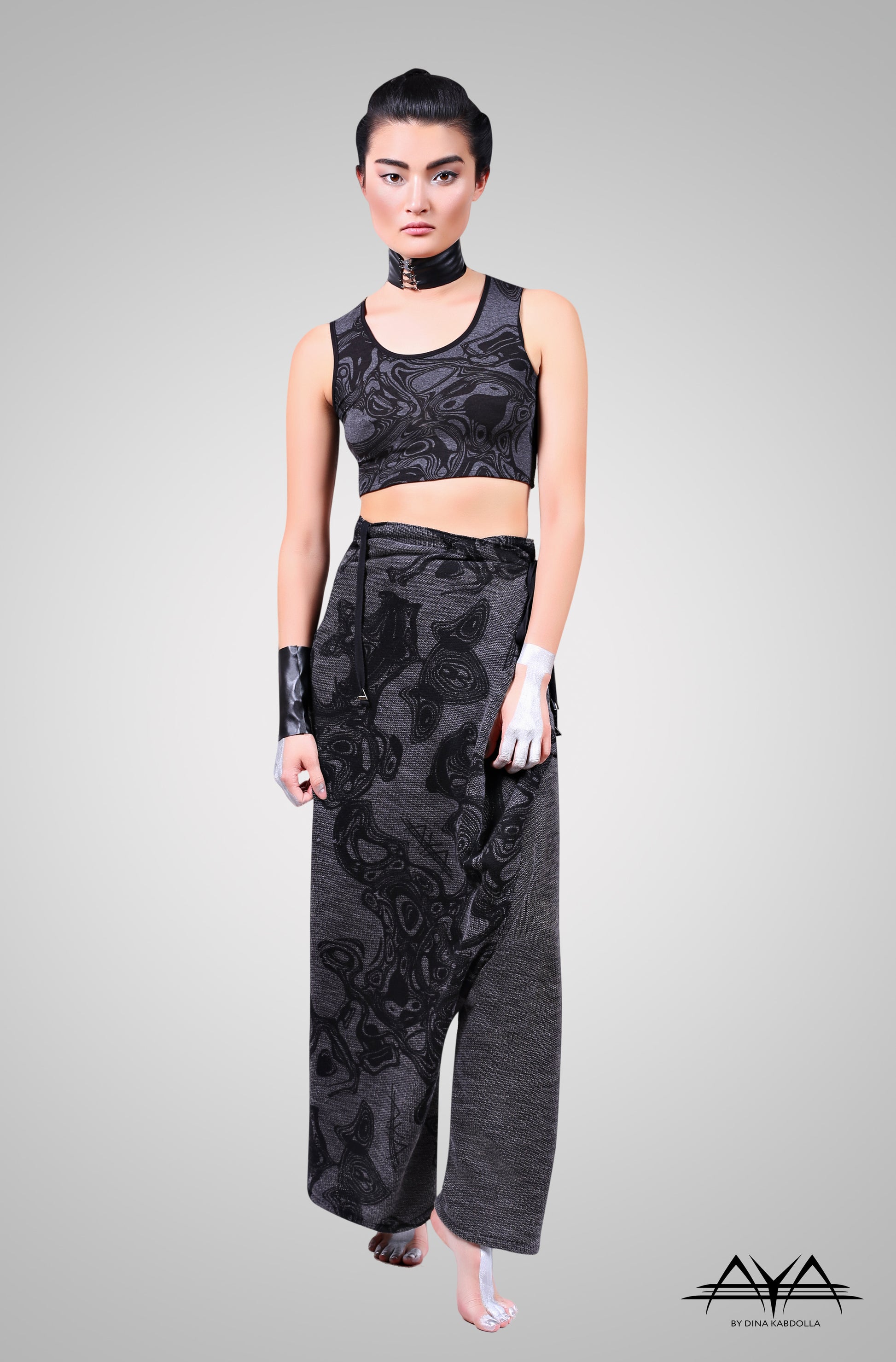 Unique to its own and apart of the UNISEX Collection, the Yvette Asymmetrical Pant transforms the typical sweat pant to runway. Available in Pattern Print.